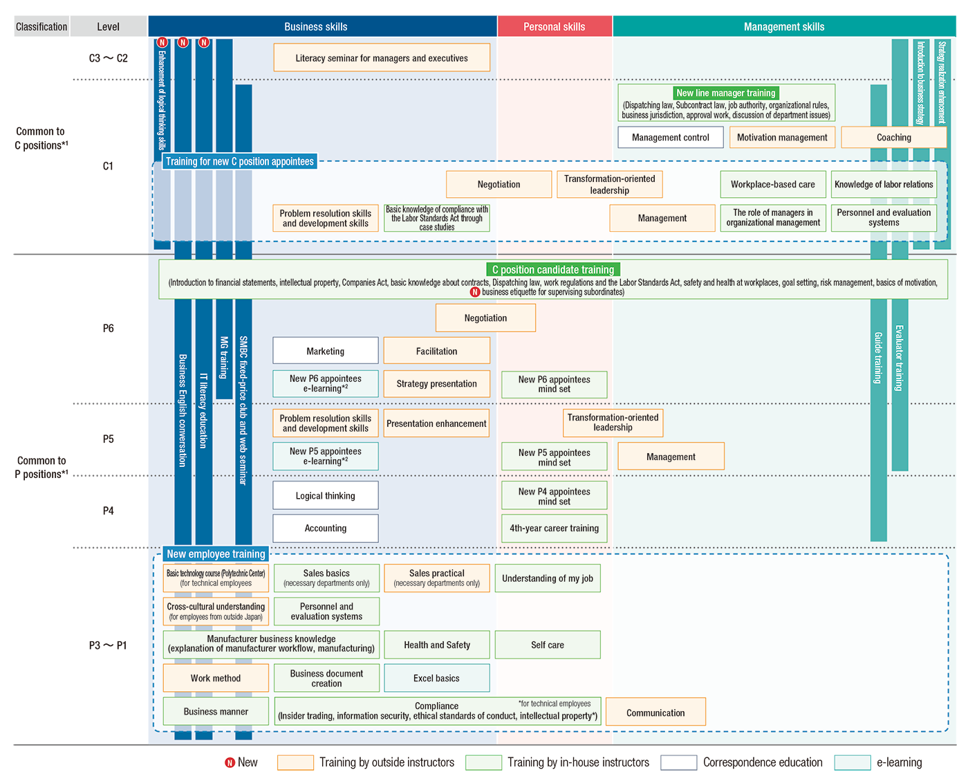 *2 e-learning courses for new P5 and P6 positions: Labor Standards Act and work regulations, Industrial Safety and Health Act and Industrial Safety and Health Management Regulations, Dispatching law and