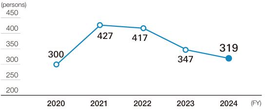 Looking at work-related accidents in fiscal 2024, industrial accidents increased by 2 incidents from the previous fiscal year to 14 incidents and commuting related accidents increased by 6 incidents to 8.